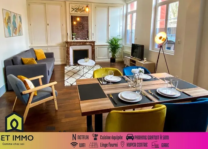 Das 66 m² große Apartment Charmant T2 Hyper-Centre, Netflix, Gare Amiens liegt lediglich 6 Gehminuten von der Kirche Saint-Remi entfernt sowie in unmittelbarer Nähe zu verschiedenen Sehenswürdigkeiten der Gegend. Für Gäste, die einen aktiven Aufenthalt suchen, bietet das 1-Zimmer-Apartment Zugang zu einem Golfclub.